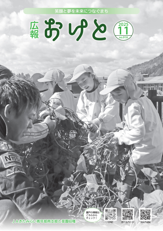 広報おけと11月号を掲載しました 2025年11月1日(土) お知らせ 広報おけと11月号表紙 今月号の表紙は「JAきたみらい青年部南支部と菜園収穫」です。下記のリンクよりダウンロードしてご覧いただけます。 令和7(2025)年度 このページの情報に関するお問い合わせ先 置戸町役場 企画財政課TEL:0157-52-3312FAX:0157-52-3353
