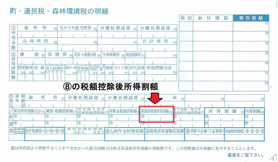 町道民税の徴収方法が普通徴収の方は「(8)税額控除後所得割額」(定額減税前)が0円の方が対象になります。